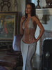 Cut from a diamante covered woven fabrication, they feature a fitted, tailored silhouette and a hidden zip closure for a clean finish. Fully lined for comfort, these mini shorts are made to complement our matching Celene Jacket for a coordinated, statement look.