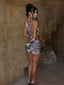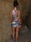 Crafted from printed stocking fabrication, this bodycon mini is designed to sculpt and flatter with its waist cut-out, high neckline, and statement netted detailing along the edges. The plunging sides and sleeveless cut add a bold touch, while the form-fitting silhouette highlights your curves in all the right places.