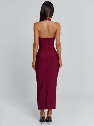 Our Lunabelle Midi Dress in Burgundy is a sculpting midi designed for evening moments.