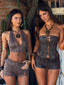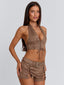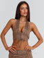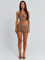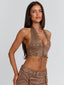 Meet our Mason Top in Brown, a halter design crafted with a soft faux suede finish. Designed with a plunging neckline and lace-up centre front bodice, she brings a bold yet elevated feel to festival styling. Functional halter and back ties allow for an adjustable fit, while silver eyelet detailing adds a striking hardware finish.