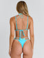 Crafted from double lined swim jersey, she features a layered double bikini effect with contrast stripe detailing. Designed with a classic triangle silhouette and adjustable underbust tie, she delivers a playful yet flattering finish.