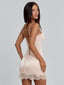 Crafted from soft stretch satin, Rosava is designed to contour the body with a smooth, flattering fit. The bust features delicate stitched detailing, while custom embroidery artwork adds subtle texture through the body. Adjustable shoulder straps and a corset lace-up back allow for a personalised fit, finished with a scalloped lace hem for a feminine touch.