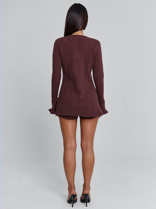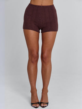 Crafted from a soft, textural true knit, they highlight the natural curve of the body while remaining comfortable and easy to wear. The herringbone-inspired pattern adds subtle dimension, giving a simple silhouette a more elevated feel. Cut to a flattering mini length, they sit high on the waist with an elasticated band that moves with you.