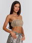 Meet our Zeriah Top in Snake Print, a bold bandeau designed with statement metallic detailing. Crafted with a metallic fringe overlay at the front and supportive poly-knit panels at the back, she combines texture with a sleek silhouette. The centre back exposed zipper ensures a secure fit, while the striking snake print keeps the look festival-ready.